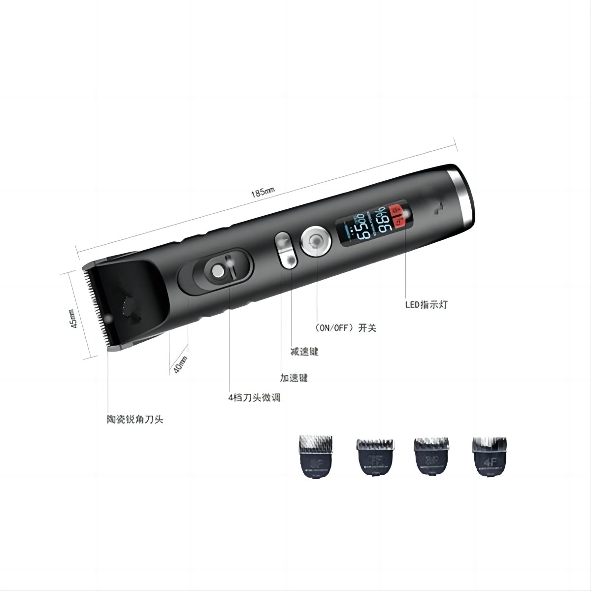 • The high-definition LED screen displays the battery level in real-time, preventing power interruptions during grooming and ensuring smoother home grooming or salon services.